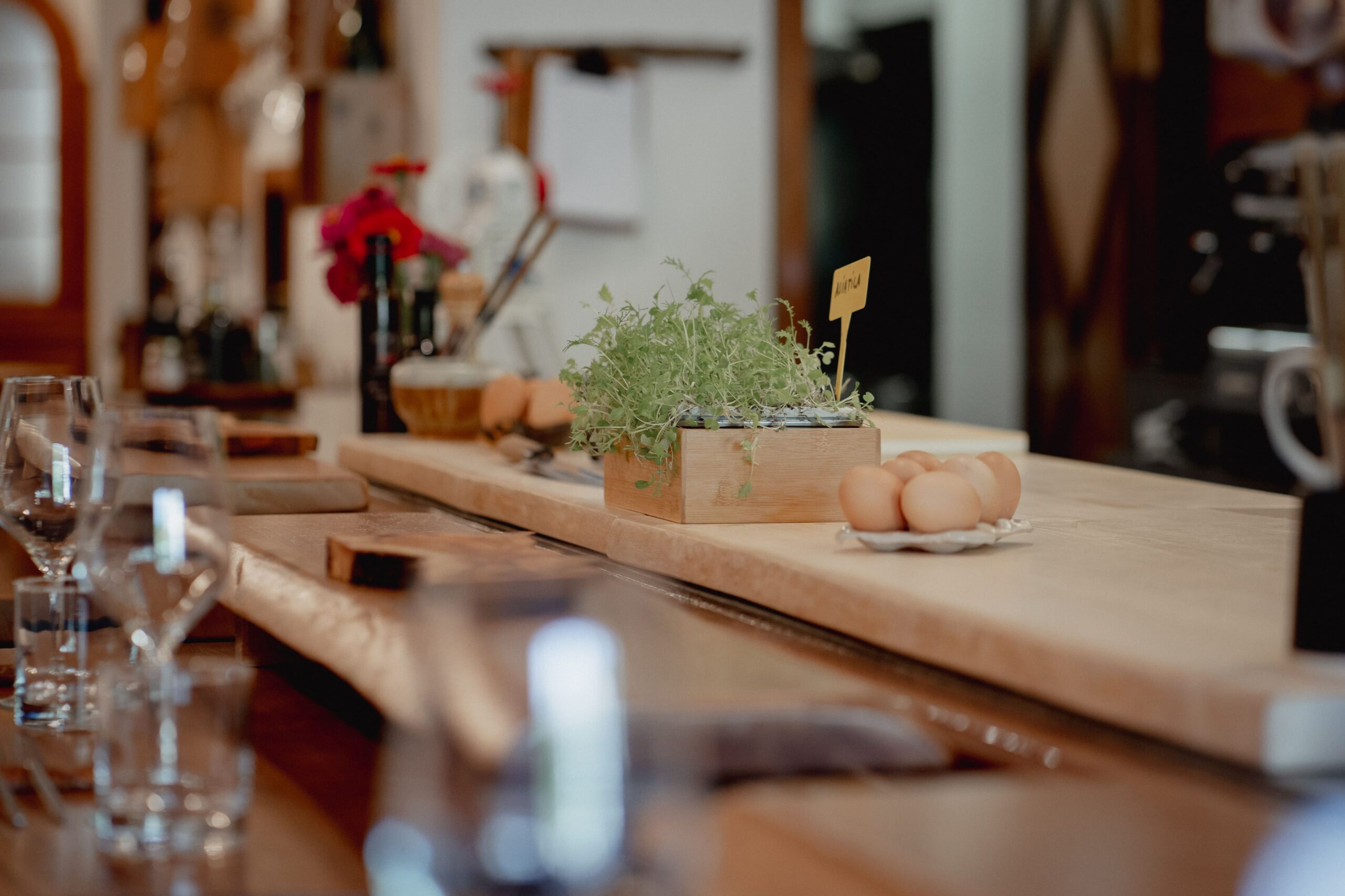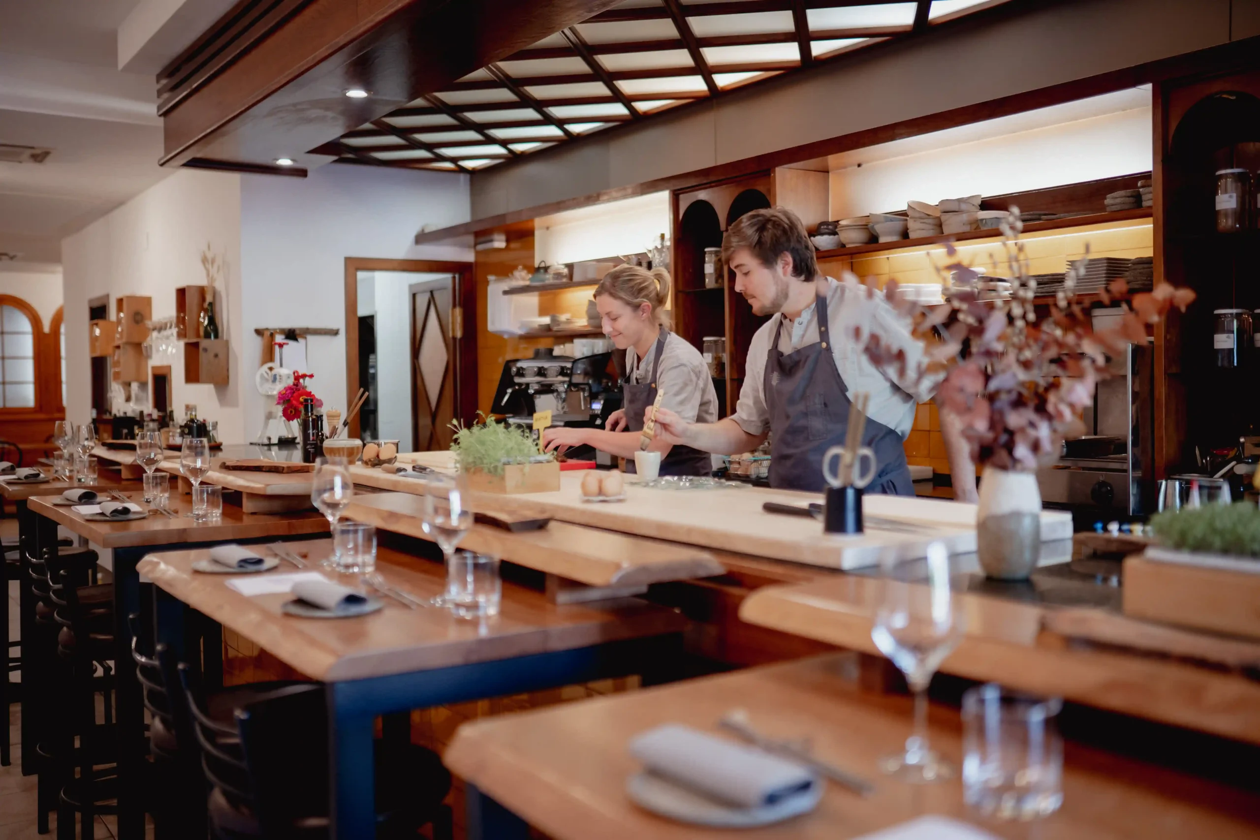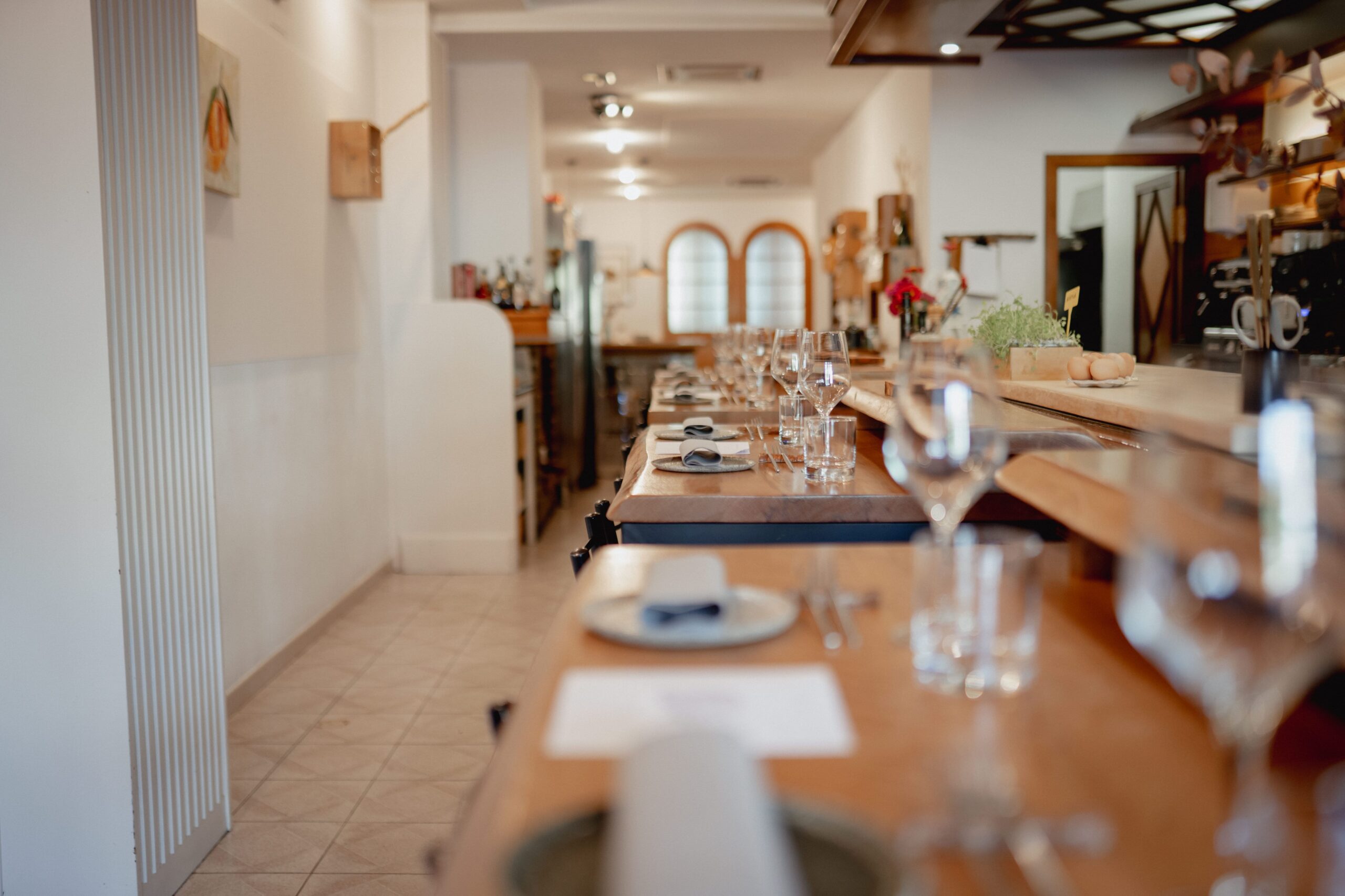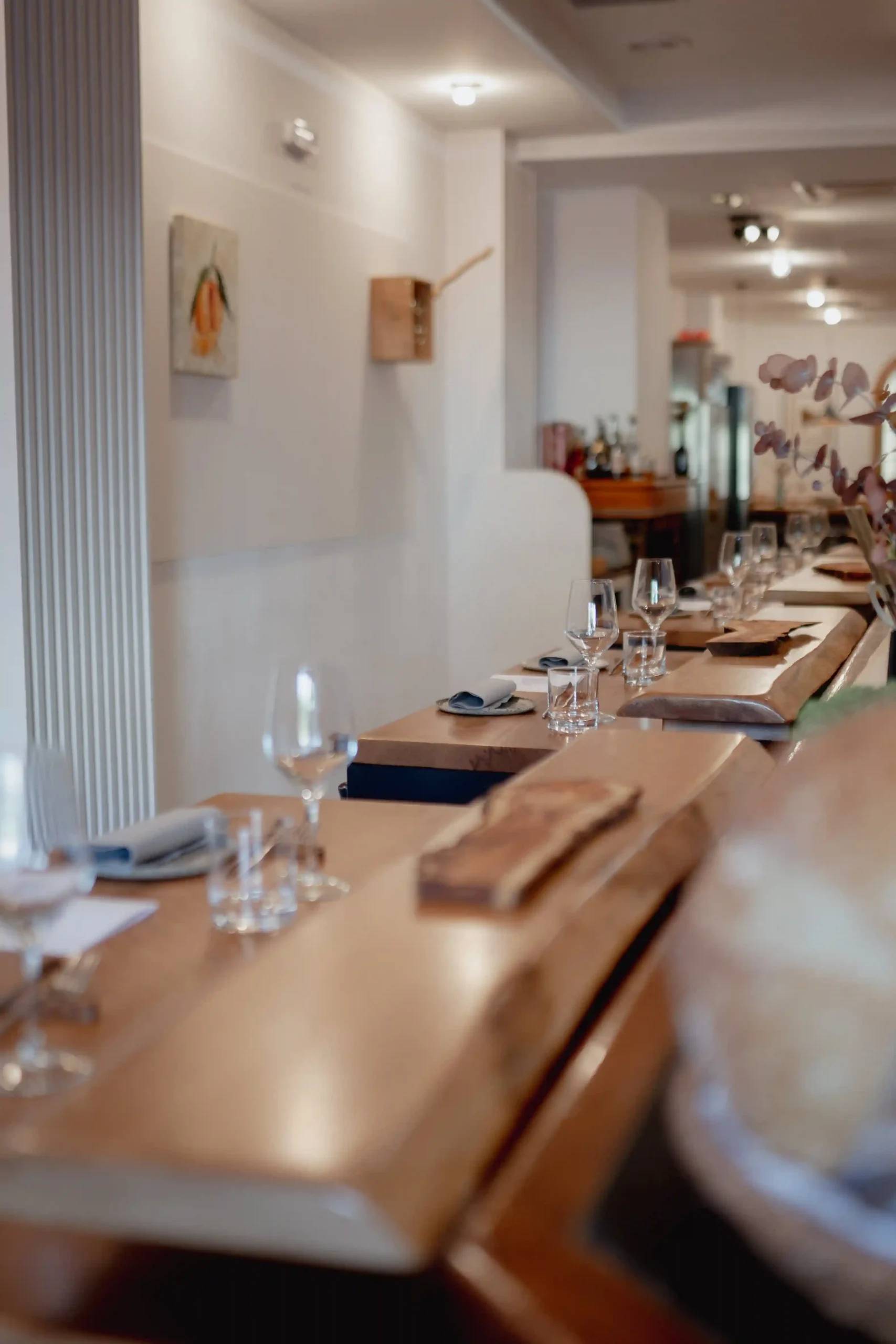 Situada en el centro del espacio, la barra es donde comienza la magia. Aquí Claudia y Jaime controlan cada detalle, creando una conexión directa con los comensales. Es el espacio ideal para ver de cerca el proceso culinario y compartir una experiencia interactiva y cercana.